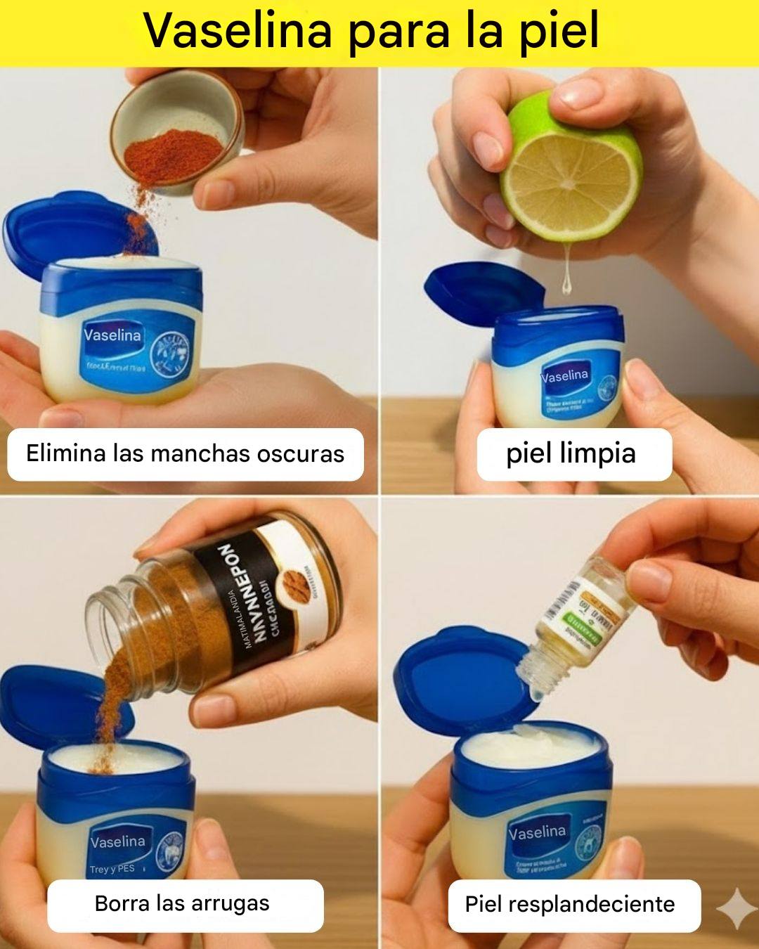 Seja para atenuar manchas escuras, hidratar a pele seca ou até mesmo estimular o crescimento capilar, a vaselina pode ser transformada em um tratamento caseiro eficaz ao ser combinada com ingredientes naturais. Aqui estão 9 maneiras inteligentes e fáceis de usá-la para uma pele macia, radiante e com aparência jovem.