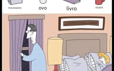 Você consegue encontrar o livro, o ovo, a xícara e o travesseiro?