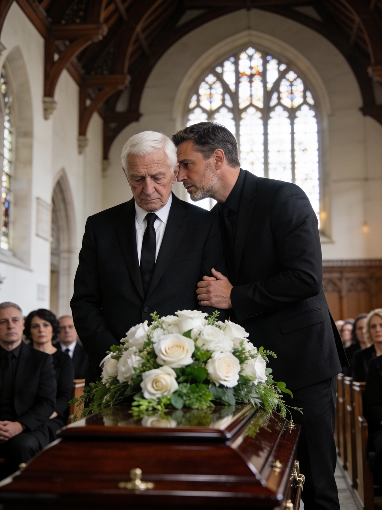 A igreja em uma cidadezinha tranquila de Vermont estava lotada de pessoas: colegas, vizinhos, parentes distantes e desconhecidos que vieram se despedir. Flores brancas e rosa-claro adornavam o altar, enquanto velas tremeluziam ao longo das paredes de pedra e o órgão tocava um hino lento que parecia prolongar o tempo.