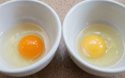 Adivinhe qual dessas gemas veio de uma galinha saudável.