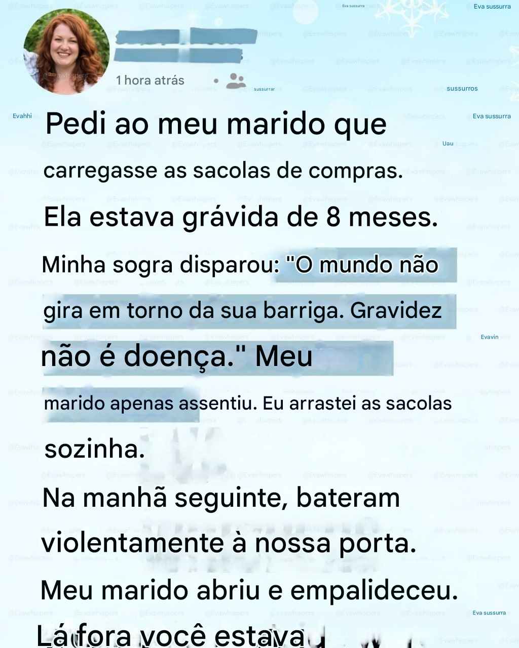 Então, peguei as sacolas e as carreguei dentro de mim. Cada passo doía, mas não como uma dor muscular. Essa dor vinha de algo mais profundo. Da sensação de rejeição. Da constatação de que a pessoa que deveria estar ao meu lado escolheu o silêncio.