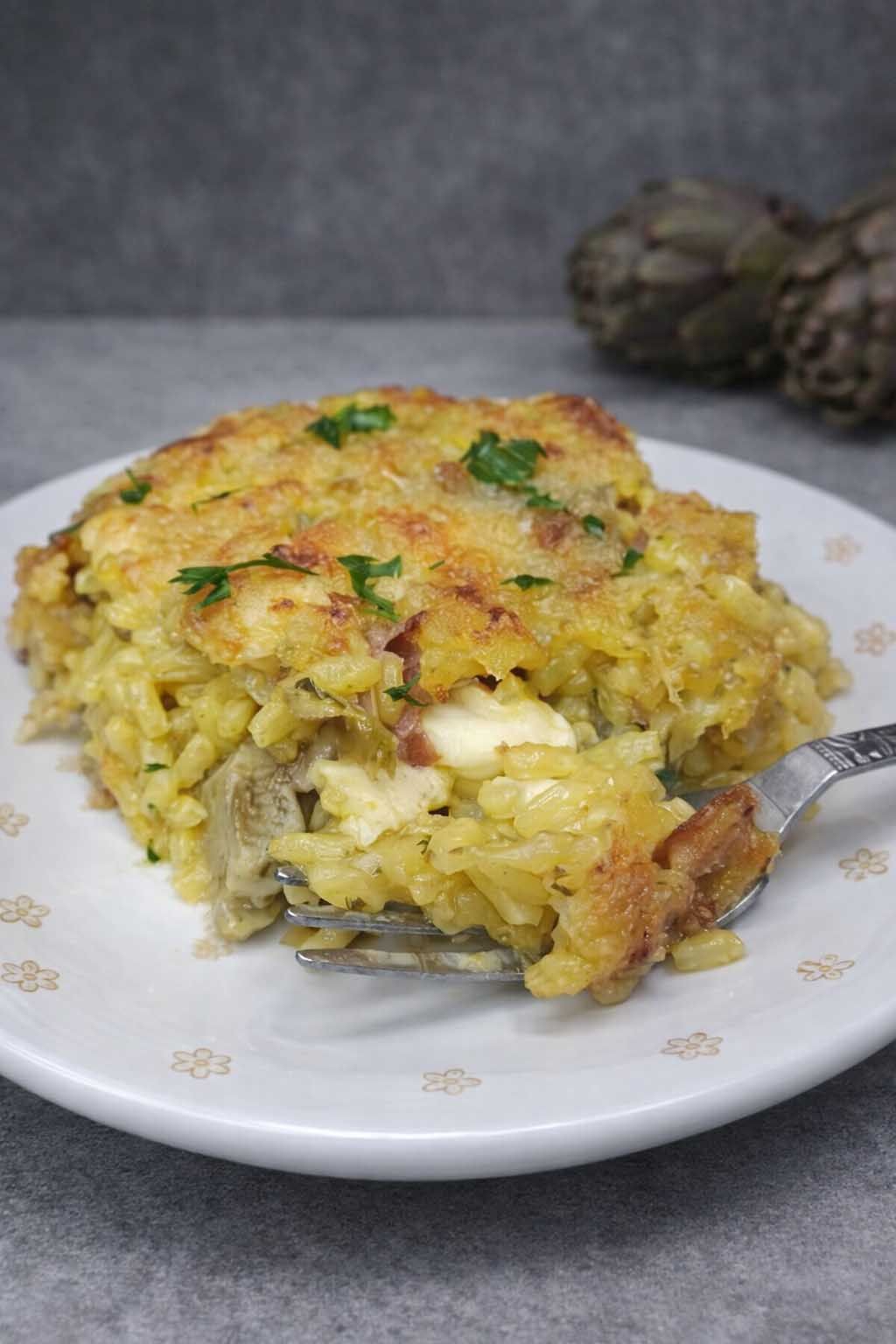 Questo riso al forno con carciofi e speck è diventato il mio asso nella manica, la preparo in anticipo e tutti ne vanno matti!